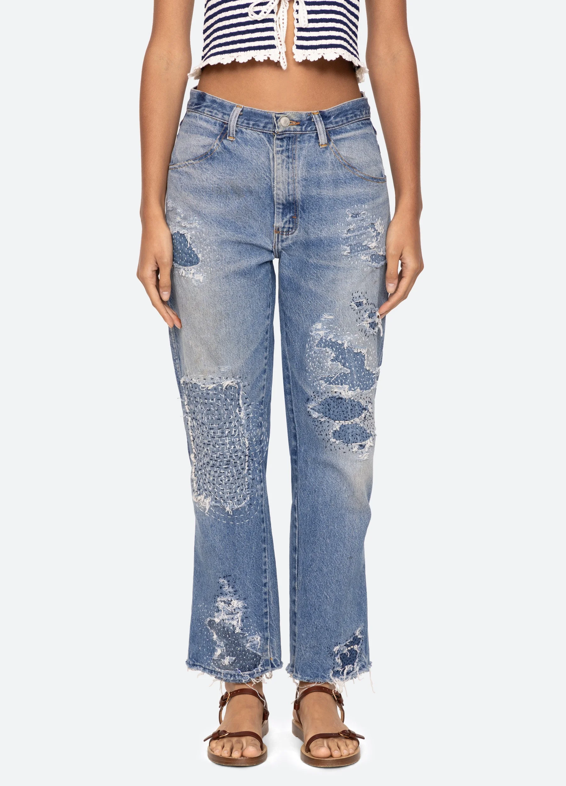 The Oli denim mid-rise style jeans feature a frayed hemline and detailed embroidery throughout. DETAILS - self-100% cotton - decoration-100% cotton - button & zipper closure - designed for a slimmer fit - style #SS25-134 - model is 5'10'' and wearing a size 4