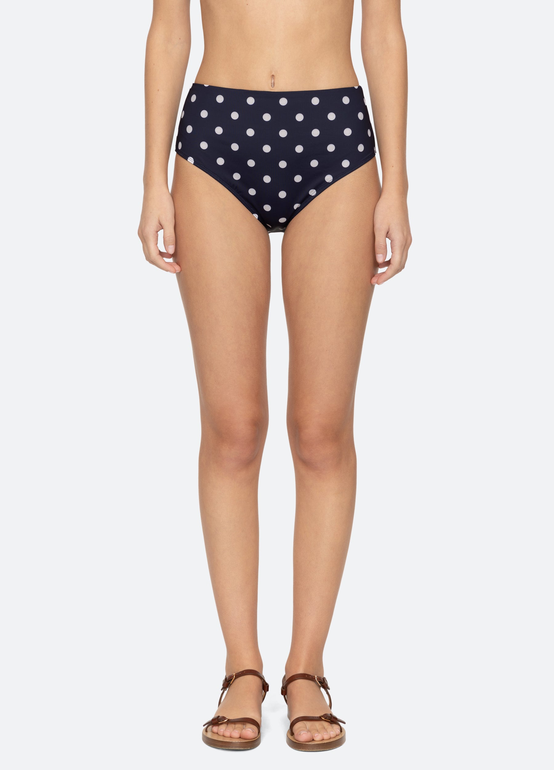 The Paulina polka dot bikini bottom features a high waisted silhouette and playful polka dot print. DETAILS - 88% polyester, 12% spandex - slip on - designed for a slimmer fit - style #SS25-726 - model is 5'10'' and wearing a size S