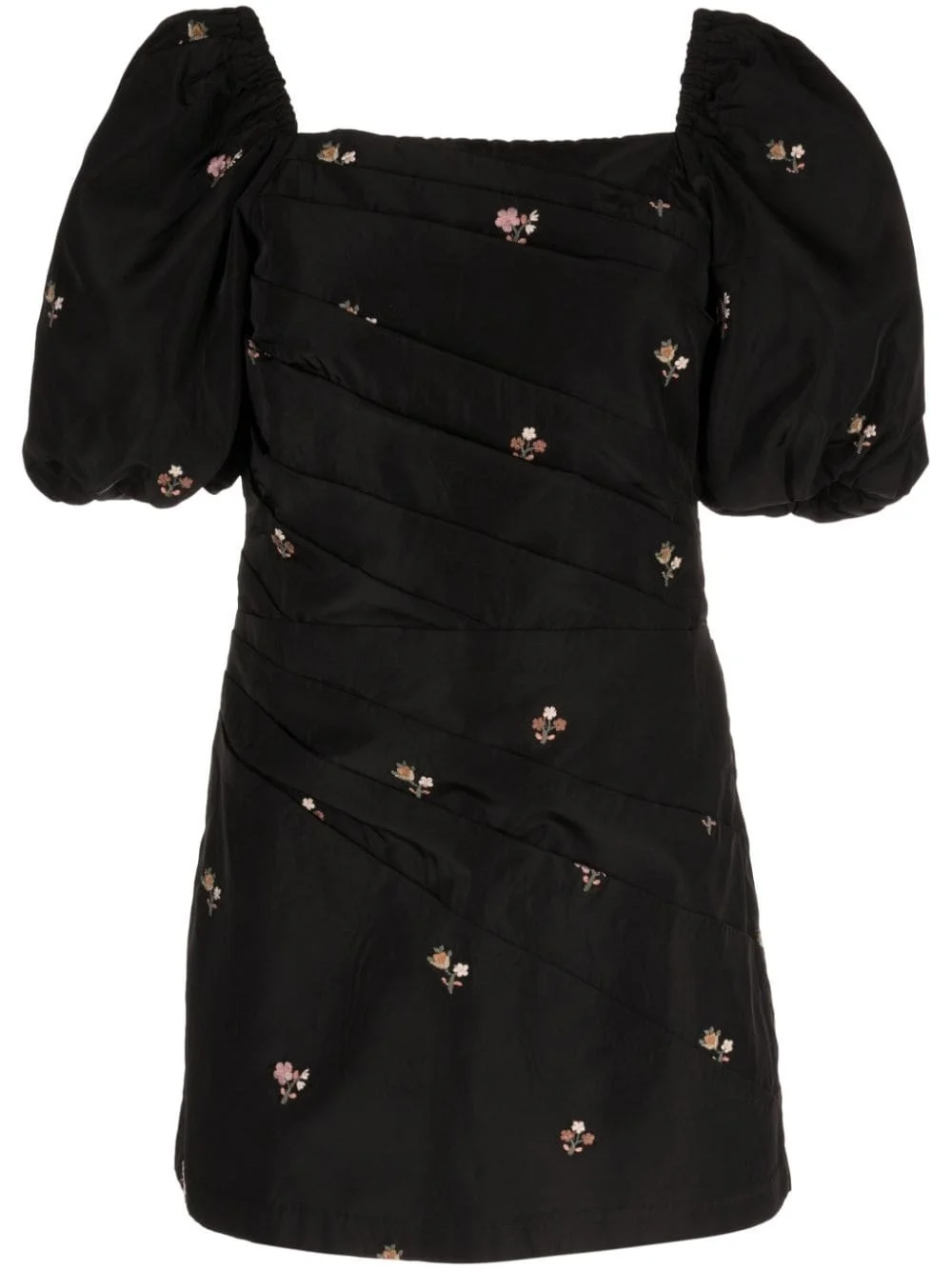 Rubina draped minidress Highlights - Black - Draped design - Floral embroidery - Square neck - Short puff sleeves - Rear zip fastening - Thigh-length - Straight hem Imported Composition Body: Polyester 100% Lining: Rayon 100% SIZE & FIT Model measurements Height 5 ft 10 in(1.77 m) Bust/Chest 31.49 in(80 cm) Hips 35.43 in(90 cm) Waist 25.19 in(64 cm)
