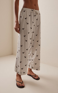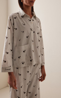 NYC-based Monica Paolini and Sean Monahan dream up pieces that resemble the perfect vintage find—and this season, they lean into their signature cool folksy-femininity. The Ruthie pajama set is crafted from striped fabric, adorned with charming embroidered sheep accents throughout. "Sweet Dreams" embroidery on the cuffs adds a whimsical, playful detail to this sleepwear set. PRODUCT DETAILS - Resort '26 - Button fastening; pull on - Composition: 100% cotton - Machine wash - Imported SIZE & FIT - Our model is wearing a size Small - Our model is 5'10" with a 30" bust, 24" waist, and 34" hip - Designed for a slim fit