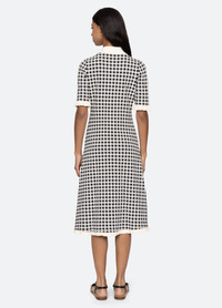The Saige gingham knit dress features ruffle trim detailing and midi silhouette. DETAILS - 83% viscose, 17% elite - slip on - button front - designed for a slimmer fit - style #PF25-027 - model is 5'10'' and wearing a size S