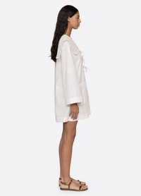 The Marie embroidered dress features front tie closures, detailed eyelet embroidery throughout and mini silhouette. DETAILS - 100% cotton - slip on - front tie closure - style #PF25-076 - model is 5'10'' and wearing a size S