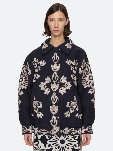 The Liliana quilted jacket features exquisite quilted detailing, adding depth and texture to its classic silhouette. Crafted with meticulous attention to detail, it offers both comfort and style. Designed for an oversized, relaxed fit. DETAILS - self-88% cotton, 12% linen - polyfill-100% polyester - lining-100% cotton - zipper & snap front closure - style #PF25-070 - model is 5'10'' and wearing a size S