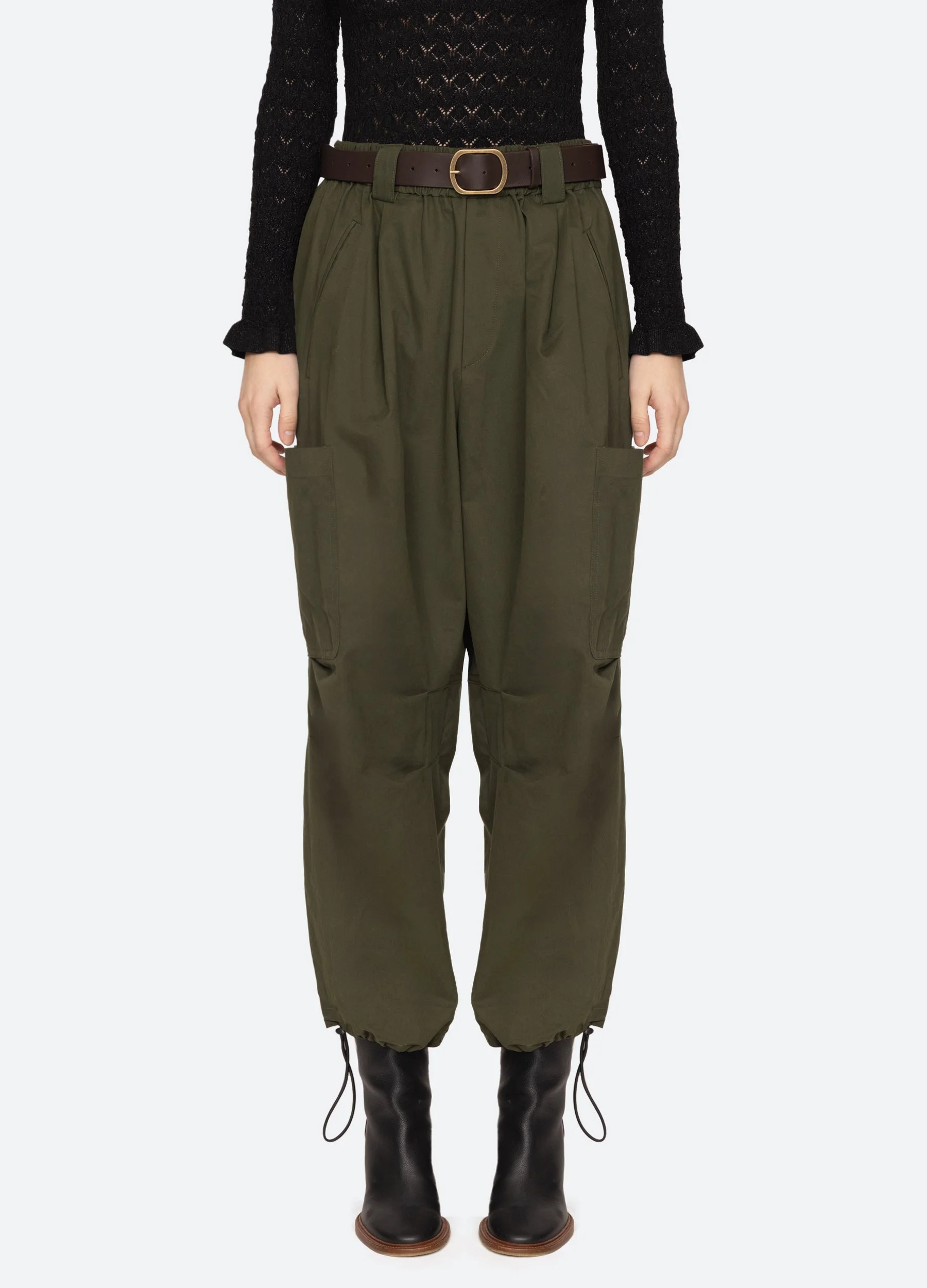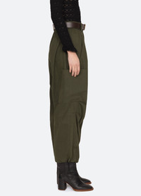The Sullivan cargo pants combine everyday utility with modern edge, featuring oversized pockets, an elasticized waistband, and a removable belt for customizable comfort. The adjustable drawstring hem delivers a polished touch, seamlessly blending function with elevated style. DETAILS - 100% cotton - slip on - designed for a relaxed fit - style #AW25-067 - model is 5'10'' and wearing a size S