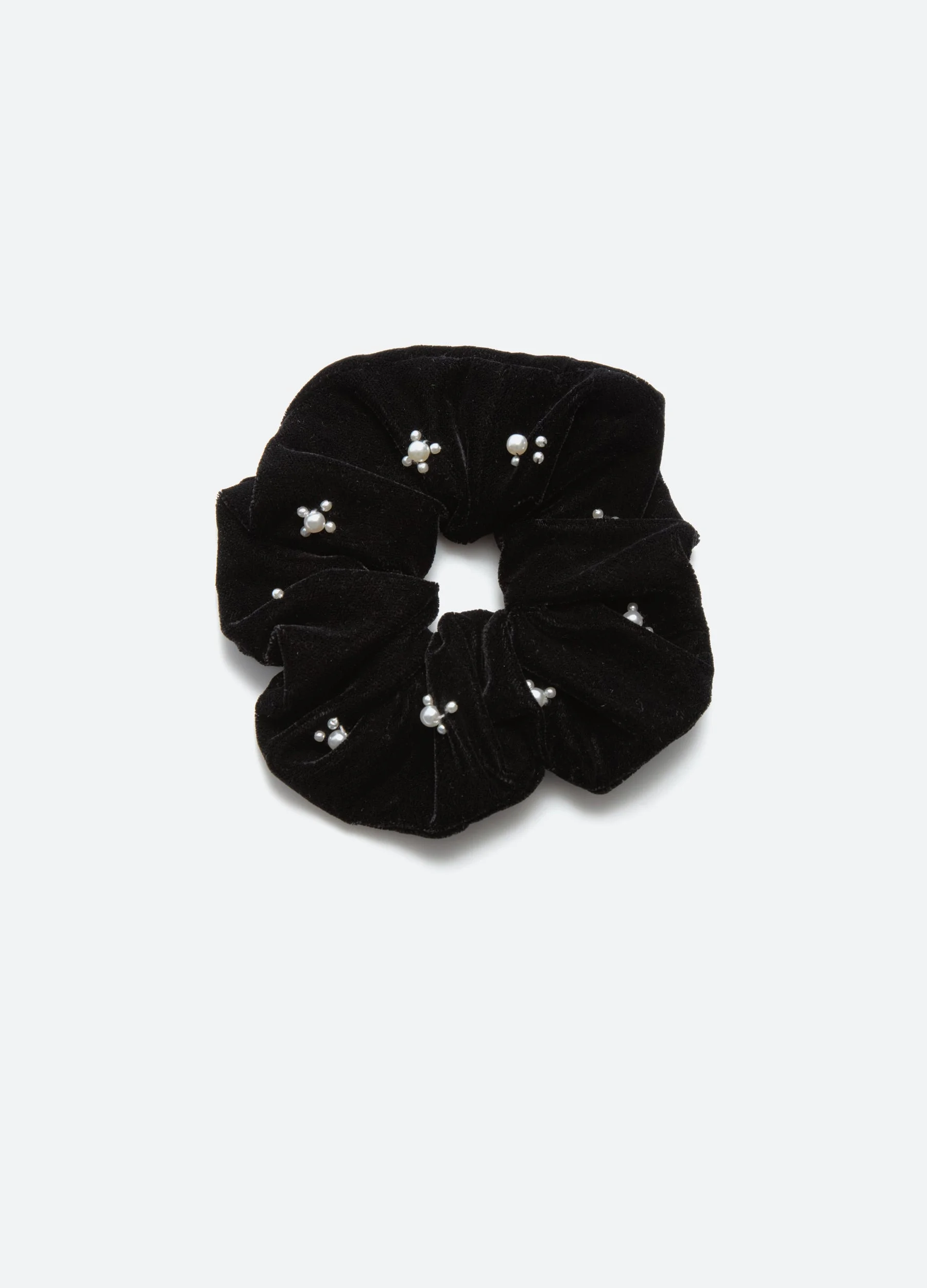 An online and in store exclusive. The Velvet scrunchie features pearl accents. DETAILS - 100% polyester - style #GT25-406WEB