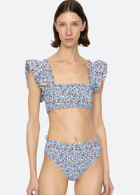 The Whitney floral print bikini bottom features a ruffle waistband and detailed smocking throughout. DETAILS - 63% nylon, 37% spandex - slip on - designed for a slimmer fit - style #PF25-725 - model is 5'10'' and wearing a size S
