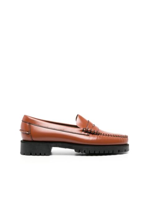 Dan penny flat loafers black round toe penny slot slip-on style branded insole flat sole Imported Composition Leather 100% SIZE & FIT Measurement HEEL 1.18 in(3 cm) Sole height 0.78 in(2 cm)