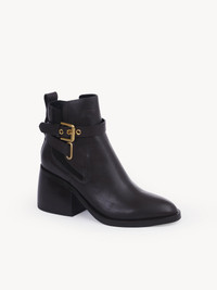Averi ankle boot in Texan calfskin combining the chunky July heel with a feminine pointed toe. Elasticated panels and an adjustable buckle ensure day-long comfort while the gold-toned See By Chloé-engraved hardware adds an elegant finishing touch. PRODUCT DETAILS Ankle boot heel height: 2.8" (70 mm) - Upper: Texan calfskin - Lining: calfskin - Sole: glossy monoblock Fit true to size - Leather boot - Internal zipper - Adjustable buckle fastening To make this product, Chloé worked with Leather Working Group (LWG) certified leather manufacturers. LWG certifies tanneries based on their water and energy usage, management of chemicals, solid waste, and wastewater. Color: Testa di Moro Item code: CHS23A011TC501