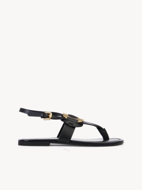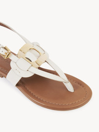 Chany flat sandal in natural calfskin with hand-stitched details and an adjustable buckle strap. The feminine upper features leather rings entwined with gold-toned See By Chloé-engraved hardware. PRODUCT DETAILS Flat sandal - Upper: natural calfskin - Sole: rubber with all-over logo - Lining: goat leather Fit true to size - Adjustable buckle strap Color: Gesso Item code: CHS23S011CA139