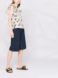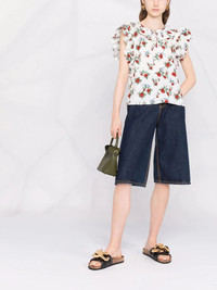 floral-print ruffle-collar blouse white cotton all-over floral print ruffle collar ruffled detailing sleeveless straight hem Imported Composition Cotton 100% SIZE & FIT Model measurements Height 5 ft 10 in(1.77 m) Bust/Chest 31.88 in(81 cm) Hips 34.25 in(87 cm) Waist 24.8 in(63 cm) Measurement LENGTH 24.01 in(61 cm) FittingInformation This piece fits true to size. We recommend you get your regular size Cut for a loose fit Made with a mid-weight non-stretch fabric Washing instructions Machine Wash