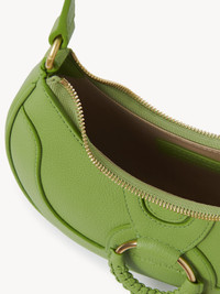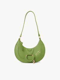 Hana half-moon bag in grained goatskin with a chic and minimal silhouette for day-to-evening wear. A feminine braided O-ring features a key chain and the signature See by Chloé medal. PRODUCT DETAILS Half-moon bag in grained goatskin Carry: hand & shoulder - Zippered top closure - 1 main compartment - Short non-removable & non-adjustable strap - Braided gold brass O-ring - Gold-tone engraved "See By Chloé" medal and key - Gold brass finish - Cotton canvas lining Comes with a dust bag - Width: 8.7" (22 cm) - Height: 6.7" (17 cm) - Depth: 2.4" (6 cm) - Strap drop: 10.6" (27 cm) This handbag is made of genuine leather. We recommend that you take the greatest care to prevent premature scratches and wear. Any imperfections or variations in color and/or appearance must not be considered as flaws, but rather what makes the product beautiful. Avoid rubbing your product against rough surfaces and protect it from sources of humidity/light/heat/liquid/grease. To make this product, Chloé worked with Leather Working Group (LWG) certified leather manufacturers. LWG certifies tanneries based on their water and energy usage, management of chemicals, solid waste, and wastewater. Color: Rainy Forest Item code: CHS23ASC1730536Z