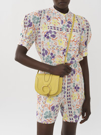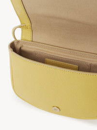 Hana mini bag in grained goatskin with a thin adjustable strap. A large feminine braided O-ring features a key chain and the signature See by Chloé medal. PRODUCT DETAILS Mini shoulder bag in grained goatskin Carry: cross-body & long shoulder - Magnetic snap button closure system - 1 main compartment - 1 flat pocket inside - Adjustable strap - Braided gold brass O-ring - Gold brass finish - Cotton canvas lining Comes with a dust bag - Width: 7.1" (18 cm) - Height: 5.5" (14 cm) - Depth: 2" (5 cm) - Min. strap length: 18.9" (48 cm) - Max. strap length: 21.3" (54 cm) This mini bag is made of genuine leather. We recommend that you take the greatest care to prevent premature scratches and wear. Any imperfections or variations in color and/or appearance must not be considered as flaws, but rather what makes the product beautiful. Avoid rubbing the product against rough surfaces and protect it from sources of humidity/light/heat/liquid/grease. To make this product, Chloé worked with Leather Working Group (LWG) certified leather manufacturers. LWG certifies tanneries based on their water and energy usage, management of chemicals, solid waste, and wastewater. Color: Retro Yellow Item code: CHS17AS901305737