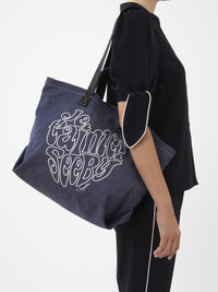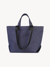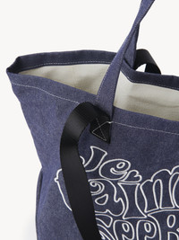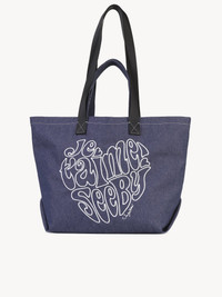 Recycled cotton denim tote bag with graphic "Je t'aime See By" heart embroidery. This large, lightweight day bag features a spacious compartment and long and short straps for shoulder and hand carry. PRODUCT DETAILS Je t'aime tote bag in recycled cotton denim Carry: shoulder & hand - Tote bag in recycled cotton denim made in France - Roomy main compartment - Long & short handles - Width: 16.5" (42 cm) - Height: 13.4" (34 cm) - Depth: 7.5” (19 cm) This purse is made of fabric. It has been treated to make it water repellent; however, contact with humidity/rain/heat should be limited. We recommend that you take special care with white or light-colored fabrics to avoid staining. Avoid rubbing the product against rough surfaces and protect it from sources of humidity/light/heat/liquid/grease. Recycled cotton keeps its natural softness and inherent quality, with a reduced environmental impact. Using recycled cotton enables us to extend the lifespan of a fiber that has already been produced. Color: Denim Blue Item code: CHS24SSC26E3849X