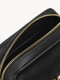 Joan camera bag in grained and suede cowhide with a refined chain strap. A large feminine braided O-ring features a key chain and the signature See by Chloé medal. PRODUCT DETAILS Grained & suede cowhide leather Carry: cross-body & long shoulder - Zip top closure - Gold brass finishing - 1 main compartment - Cross-body leather strap with metal chain on the front - 1 flat pocket with a flap closed by an oversized round hook Inside: - 1 card slit Comes with a dust bag - Width: 15 cm - Height: 14 cm - Depth: 5 cm - Strap length: 58 cm This article is made of velvet leather. To preserve its natural appearance and velvety feel, it has not been treated. As such, it is more sensitive to light, staining and colour bleeding. Avoid all prolonged contact with contrasting coloured fabrics which could bleed (e.g. denim). Avoid rubbing the product against rough surfaces and protect it from sources of humidity/light/heat/liquid/grease. Colour: black Item code: CHS19SS994330001