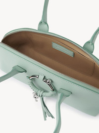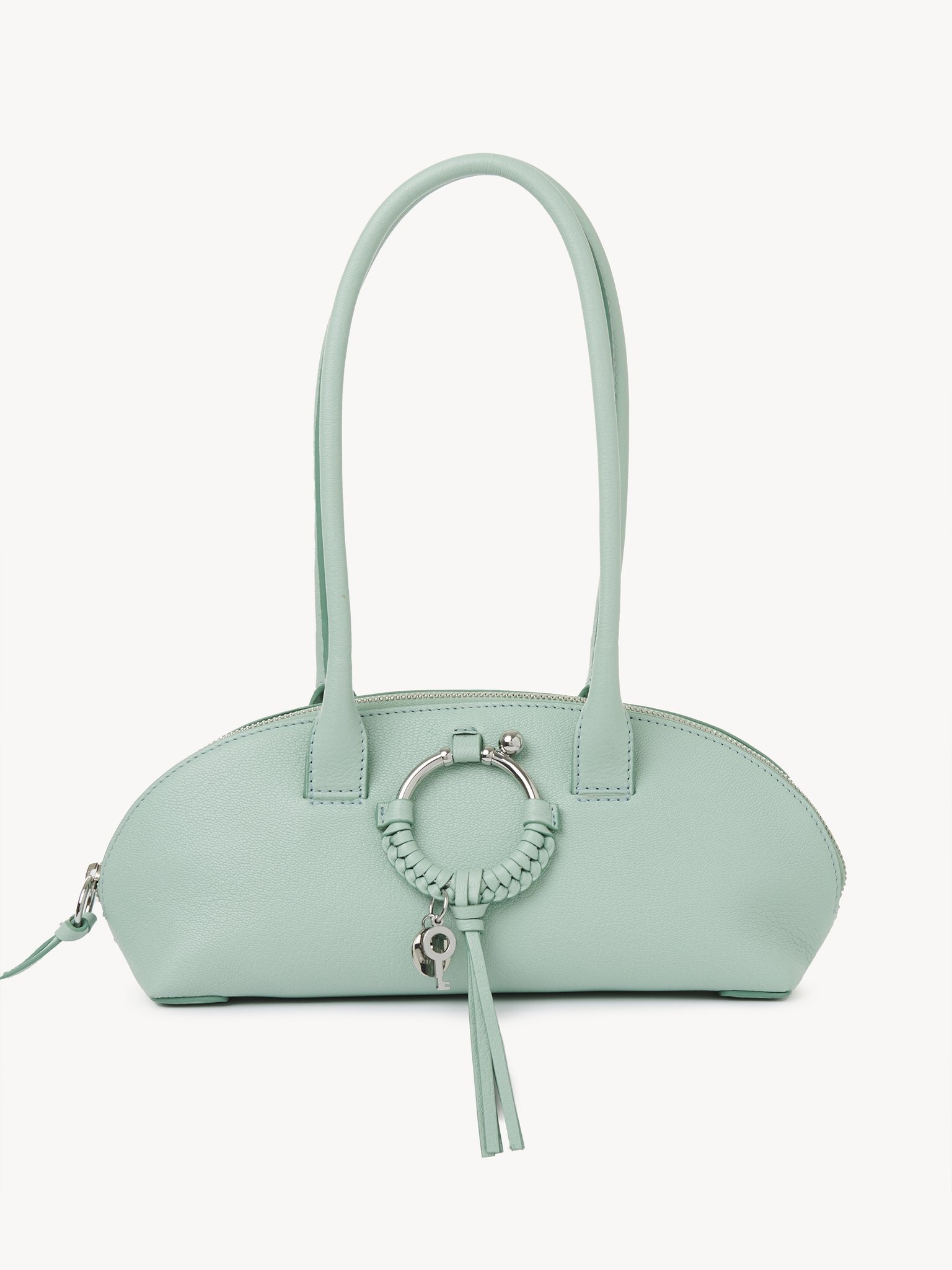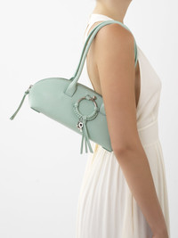Joan purse in grained goatskin with double handles for comfortable shoulder carry. The trendy silhouette features a wide main compartment embellished with the line's signature feminine braided O-ring with the See by Chloé key and medal in silver. PRODUCT DETAILS Double handle purse in grained goatskin Carry: shoulder & hand - Two handles - 1 main compartment - Zipper closure - Flat pocket inside - Cotton canvas lining Comes with a dust bag - Width: 11.8" (30 cm) - Height: 4.7" (12 cm) - Depth: 3.5" (9 cm) This purse is made of genuine leather. We recommend that you take the greatest care to prevent premature scratches and wear. Any imperfections or variations in color and/or appearance must not be considered as flaws, but rather what makes the product beautiful. Avoid rubbing the product against rough surfaces and protect it from sources of humidity/light/heat/liquid/grease. To make this product, Chloé worked with Leather Working Group (LWG) certified leather manufacturers. LWG certifies tanneries based on their water and energy usage, management of chemicals, solid waste, and wastewater. Color: Blowy Blue Item code: CHS24SSC23D5141U