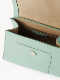 Joan ladylike purse in grained goatskin with a structured silhouette. Sophisticated yet practical, it combines a roomy compartment with a top handle and strap for hand and shoulder carry. The front is embellished with the line's feminine braided O-ring with the See by Chloé key and medal in silver. PRODUCT DETAILS Double handle purse in grained goatskin Carry: cross-body & hand - Inside flat pocket - Front flat exterior pocket - Top handle - Adjustable strap - Cotton canvas lining Comes with a dust bag - Width: 9.1" (23 cm) - Height: 6.7" (17 cm) - Depth: 5.5" (14 cm) - Min. strap drop: 17.3" (44 cm) - Max. strap drop: 20.5" (52 cm) This purse is made of genuine leather. We recommend that you take the greatest care to prevent premature scratches and wear. Any imperfections or variations in color and/or appearance must not be considered as flaws, but rather what makes the product beautiful. Avoid rubbing the product against rough surfaces and protect it from sources of humidity/light/heat/liquid/grease. To make this product, Chloé worked with Leather Working Group (LWG) certified leather manufacturers. LWG certifies tanneries based on their water and energy usage, management of chemicals, solid waste, and wastewater. Color: Blowy Blue Item code: CHS24SSC24D5141U