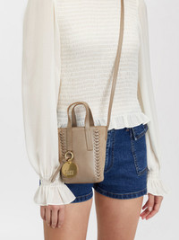 Tilda mini tote bag in smooth and suede cowhide with a deep compartment to carry your phone. Braided trims and an oversized See By Chloé medal bring a signature touch to this trendy accessory. PRODUCT DETAILS Mini tote bag in smooth cowhide & suede cowhide Carry: cross-body, long shoulder & hand - Magnetic snap button closure system - 1 main compartment - 100% cotton canvas lining Comes with a dust bag - Width: 6.7" (17 cm) - Height: 7.1" (18 cm) - Depth: 2.4" (6 cm) - Min. strap drop: 3.1" (8 cm) - Max. strap drop: 21.3" (54 cm) This tote bag is made of velvet leather. To preserve its natural appearance and velvety feel, it has not been treated. As such, it is more sensitive to light, staining and color bleeding. Avoid prolonged contact with contrasting colored fabrics that may bleed (e.g. denim). Avoid rubbing the product against rough surfaces and protect it from sources of humidity/light/heat/liquid/grease. To make this product, Chloe worked with Leather Working Group (LWG) certified leather manufacturers. LWG certifies tanneries based on their water and energy usage, management of chemicals, solid waste, and wastewater. Color: Motty Grey Item code: CHS23USC05C9923W