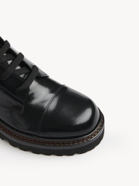Mallory lace-up ankle boot in glossy calfskin with an internal zipper and two buckle fastenings. The chunky heel and oversized leather loop enhance the modern, urban structure of this iconic See By Chloé style. PRODUCT DETAILS Ankle boot heel height: 2.6" (65 mm) (front platform: 1" (25 mm)) Sole: rubber & calfskin leather Upper: glossy calfskin Lining: calfskin Fit true to size - Biker boot - Oversized loop with "See By Chloé" logo - Zipper at the side - 2 buckle fastenings - Lace-up system By purchasing these products from LWG certified tanneries, you are supporting sustainable leather manufacturing through the Leather Working Group. Color: Nero Item code: CHS19A080ZC999