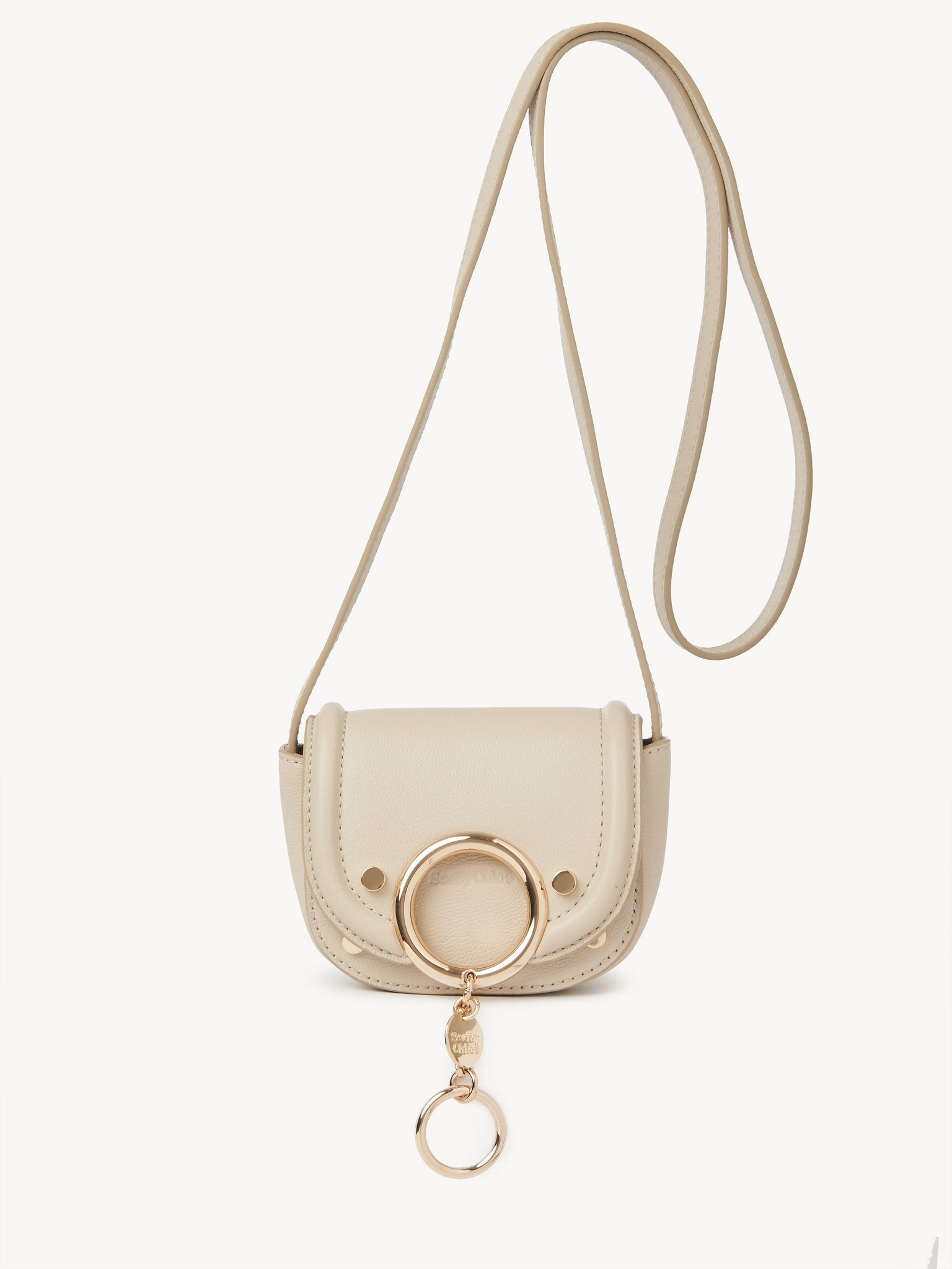 Mara micro crossbody bag in small grain cowhide featuring the line's oversized ring with the signature See By Chloé medal. Its diminutive size makes it the perfect trendy party accessory with space for cards and small essentials. Gold hardware adds an elegant finishing touch. PRODUCT DETAILS Micro crossbody bag in small grain cowhide - Magnetic snap button closure - 1 main compartment - Non adjustable strap - Gold chain detail with "See By Chloé" round medal - Width: 5.1" (13 cm) - Height: 4.1" (10.5 cm) - Depth: 3.1" (8 cm) - Strap length: 19.7" (50 cm) This crossbody bag is made of genuine leather. We recommend that you take the greatest care to prevent premature scratches and wear. Any imperfections or variations in color and/or appearance must not be considered as flaws but are what makes the product beautiful. Avoid rubbing the product against rough surfaces and protect it from sources of humidity/light/heat/liquid/grease. Color: Cement Beige Item code: CHS23WPB2638824H