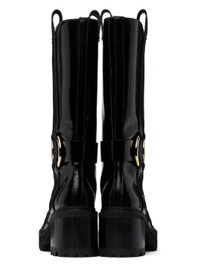 Mid-calf polished calfskin boots in black. · Embossed logo and O-ring at outer side · Pull-loops at collar · Topstitching at welt · Foam rubber midsole · Stacked leather block heel · Treaded rubber lug sole · Logo-engraved gold-tone hardware · Heel: H3" Supplier color: Black Upper: calfskin. Sole: leather, rubber. Made in Spain 242373F114000