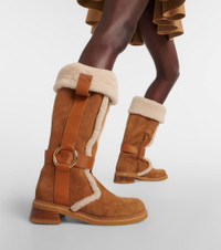 New Ring suede and shearling knee-high boots
