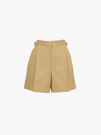 City Bermuda shorts in organic cotton gabardine for a utilitarian look. Side tabs detail the waistband while front pressed pleats lend a tailored allure to this trans-seasonal piece. PRODUCT DETAILS Pleated Bermuda shorts main material: 100% cotton Care: Gentle wash at 90°F (30°C)/Reduced dry clean P Fit: Wide, mini-length - City Bermuda shorts - Front pressed pleats - Side tab detail at the waistband - Regular waist - Front zipper and hook An organic cotton farming system sustains the health of soils, ecosystems and people by eliminating the use of toxic and persistent organic pollutants and increasing water conservation. Color: Jungle Brown Item code: CHS23SSH02002220