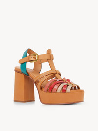 Sierra high-heel sandal in natural calfskin with multicolor criss-cross straps for a vibrant summer mood. Contrast stitching and a classic square buckle add refined details to this chunky leather sandal. PRODUCT DETAILS High-heel sandal heel height: 2.8" (70 mm) (front platform: 1.2" (30 mm)) - Upper: natural calfskin - Sole: tunit - Lining: calf leather Fit true to size - Chunky leather sandal - Contrast stitching - Adjustable strap with classic square buckle By purchasing this product from an LWG silver-certified tannery, you are supporting sustainable leather manufacturing through the Leather Working Group. Color: Rosso Item code: CHS23S103CA301