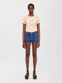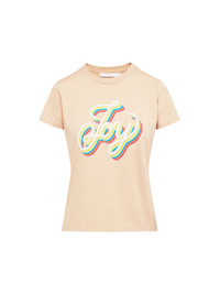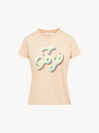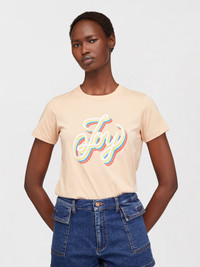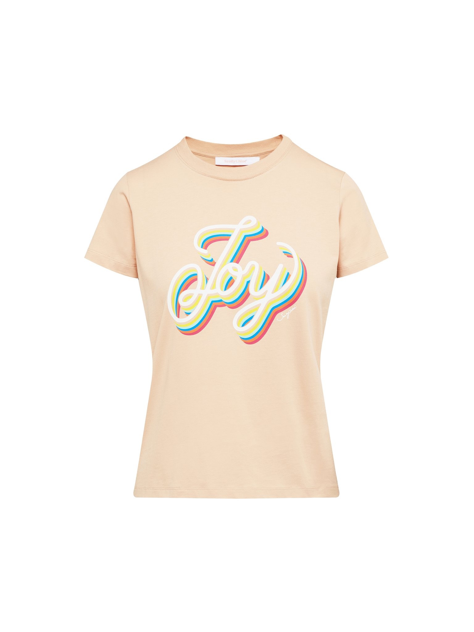 Small-fit t-shirt in organic cotton jersey, featuring a neon-inspired "Joy" print for a psychedelic LA city vibe. PRODUCT DETAILS Small-fit t-shirt Outer shell, collar: 100% cotton, Back embroidery: 100% polyester Care: Gentle wash at 90°F (30°C)/Reduced dry clean Fit: Small - Round-neck t-shirt - Placed print - Half-moon overlock stitch - Embroidered signature An organic cotton farming system sustains the health of soils, ecosystems and people by eliminating the use of toxic and persistent organic pollutants and increasing water conservation. Color: Biscuit Pink Item code: CHS23UJH241106H7