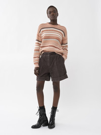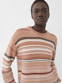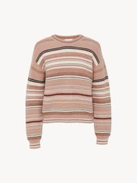 Crew-neck women's jumper in a cosy alpaca blend. Rosy multicolor stripes and dropped shoulders enhance the relaxed, daywear mood. PRODUCT DETAILS Striped women's jumper main material: 50% alpaca wool, 45% polyamide, 5% ovis aries wool Care: Do not wash/Professional dry clean Fit: Straight - Crew-neck women's sweatshirt - Rosy Multicolor stripes - Dropped shoulders - Slip-on Color: Multicolor Item code: CHS22WMP085809CA