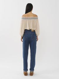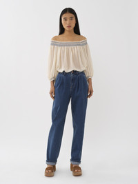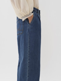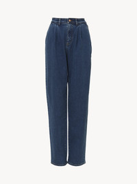 Organic denim pants with a full-length, tapered silhouette. Front pressed pleats give these must-have blue jeans a relaxed fit. PRODUCT DETAILS Tapered denim jeans main material: 99% cotton, 1% elastane Care: Gentle wash at 90°F (30°C)/Reduced dry clean P Fit: Full length, tapered - Tapered denim jeans - Front pressed pleats - Regular waist - Leather patch at the back - Front zipper and one button An organic cotton farming system sustains the health of soils, ecosystems and people by eliminating the use of toxic and persistent organic pollutants and increasing water conservation. Color: Deep Denim Item code: CHS23SDP02150477