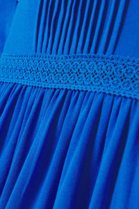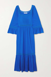 EDITORS'NOTES See By Chloé's dress is cut from breathable cotton and trimmed with tonal lace. It has a square neckline, floaty sleeves and a tiered skirt that’s enhanced with soft pleats. Style yours with strappy sandals. SIZE & FIT - Fits true to size, take your normal size - Designed to be slightly fitted at the bust and waist, loose at the hip - Mid-weight, stretchy fabric - Model is 177cm/ 5'10" and is wearing a size Small DETAILS & CARE - Blue cotton and lace - Slips on - 100% cotton - Machine wash - Designer color: Wild Blue
