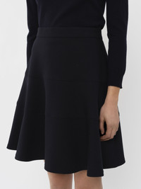 Knee-length skirt in a cotton mix fabric from deadstock. With its classic A-line silhouette, this tiered skirt is a wardrobe staple. PRODUCT DETAILS Knee-length skirt main material: 55% Cotton, 24% Polyester, 19% Ovis aries wool, 2% Elastane Care: Gentle wash at 90°F (30°C)/Professional dry clean Fit: A-line, knee length - Deadstock cotton mix skirt - Regular waist - Tiered silhouette - Invisible zipper at the side This product is made using deadstock: leftover materials transformed into new products to decrease the production of new materials and lower our environmental footprint. The quality remains the same, but the environmental impact is reduced. We prefer deadstock because reusing an existing material is always more sustainable than spending resources on producing a new one. Color: Anthracite Blue Item code: CHS22AJU010324D2