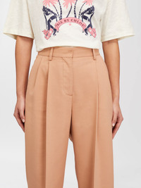 Wide-leg tailored pants in an organic cotton blend with a flattering tapered silhouette. Front pleats and topstitching enhance the menswear allure. PRODUCT DETAILS Tailored pants Outer shell: 52% cotton, 31% polyester, 13% viscose, 4% elastane, Inner lining: 100% cotton, Under belt: 70% polyester, 30% cotton Care: Gentle wash at 90°F (30°C)/Reduced dry clean Fit: Wide leg, tapered - Tailored pants - Regular waist - Front leg topstitching - Front pleats - Piped back pocket An organic cotton farming system sustains the health of soils, ecosystems and people by eliminating the use of toxic and persistent organic pollutants and increasing water conservation. Color: Dusty Coral Item code: CHS23UPA040326I2