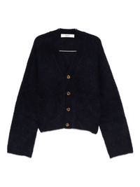 alpaca wool-blend cardigan Highlights - Blue - V-neck - Front button fastening Imported Composition Alpaca 72%, Nylon 26%, Elastane 2% SIZE & FIT Model measurements Height 5 ft 10 in(1.77 m) Bust/Chest 32.28 in(82 cm) Hips 35.03 in(89 cm) Waist 25.19 in(64 cm) Washing instructions Dry Clean Only