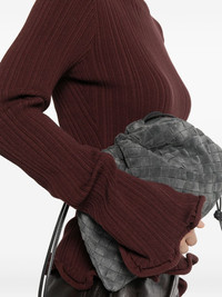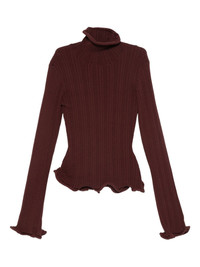 Paloma ribbed trumpet sweater Highlights - Burgundy - Ribbed knit - Mock neck - Long sleeves - Trumpet cuffs - Trumpet hem Imported Composition Cotton 68%, Nylon 32% SIZE & FIT Model measurements Height 5 ft 10 in(1.79 m) Bust/Chest 33.46 in(85 cm) Hips 34.64 in(88 cm) Waist 23.62 in(60 cm) Washing instructions Read Manufacturer Guidelines