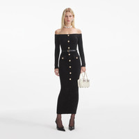 Black Chenille Knit Midi Dress
