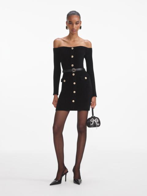 Details & Fit Rendered in chenille knit for a soft yet sculpted feel, this body-hugging LBD is as flattering as they come. Draw eyes to its off-shoulder neckline and gold buttons with our statement earrings. COMPOSITION Main: 50% Viscose 28% Polyester 22% Polyamide