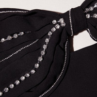 A cocktail classic with a contemporary twist, this little black dress is cut from bonded crepe for its fitted look and clean finish. The sculpted bodice is framed by a sweetheart neckline and diamanté bow, while the flattering draped split allows for ease of movement. Pair it with matching pumps and statement jewellery for your next invite-only occasion. Check the Size Guide to find your perfect fit. COMPOSITION Main Fabric: 100% Polyester Lining: 100% Polyester