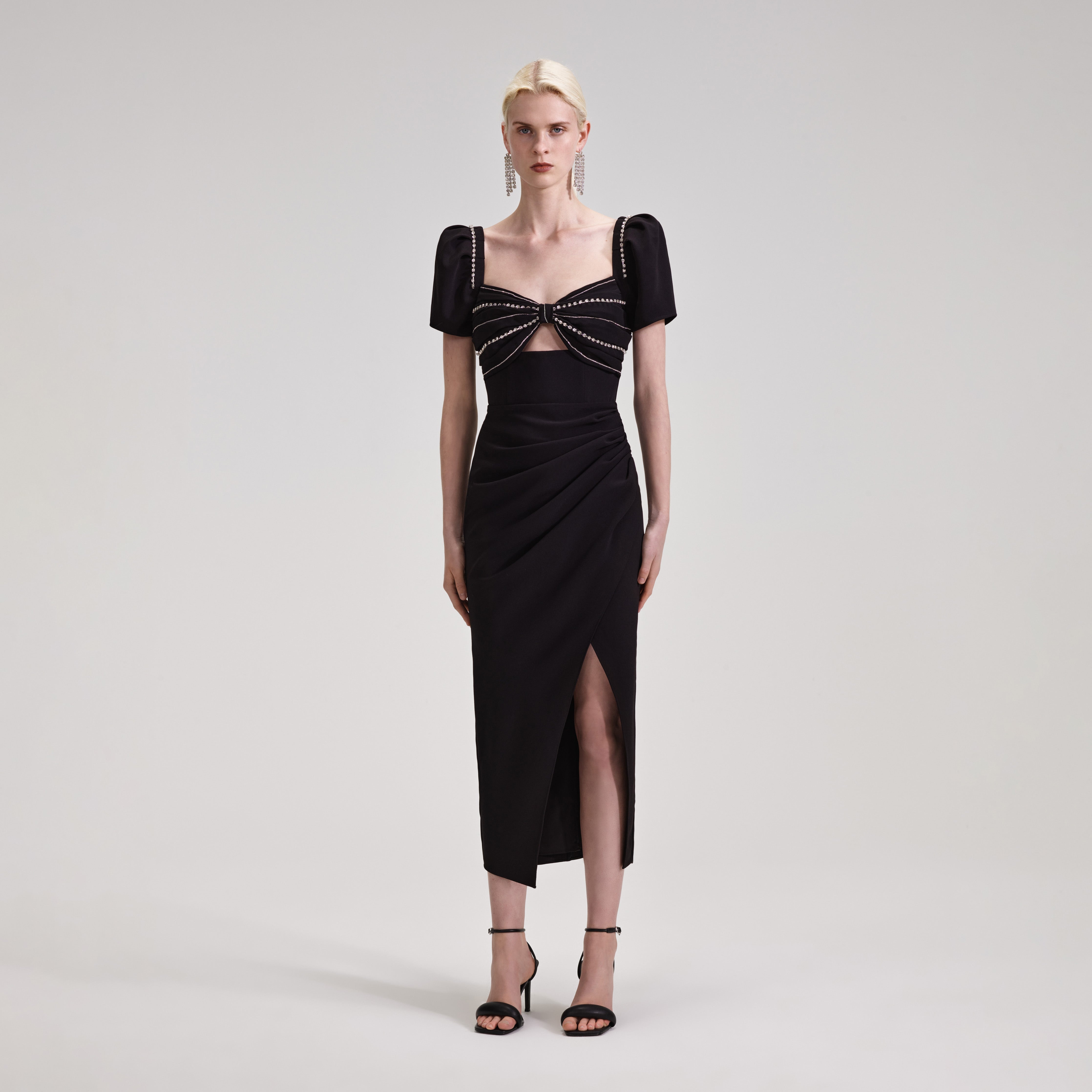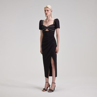 Black Diamante Bust Midi Dress