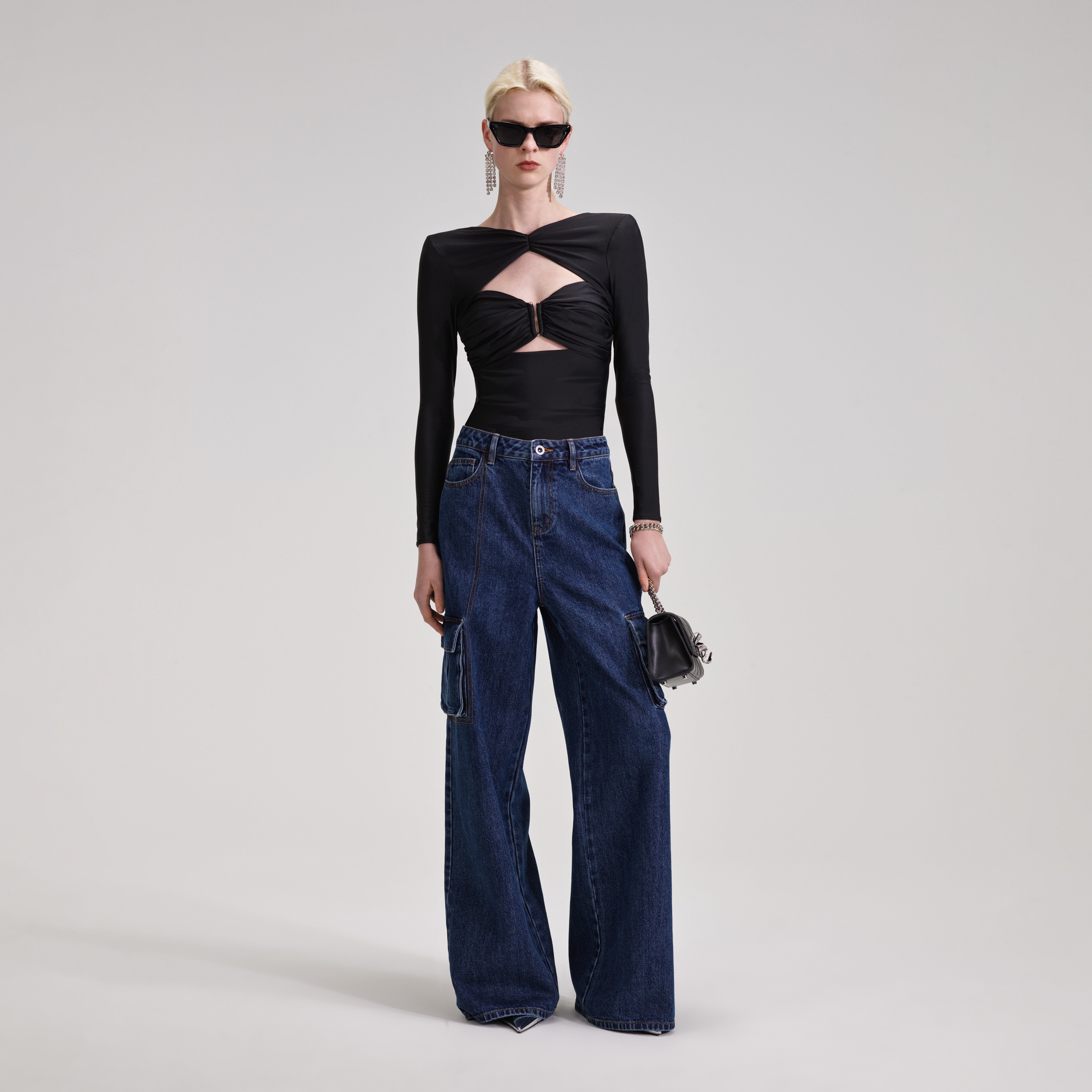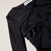 This sleek black top will soon be a staple in your wardrobe. Crafted from soft black jersey, the flattering cut-outs show a flash of skin, while the ruching is carefully placed to make the most of your figure. Wear with denim for dinner, or up the ante with a sparkling skirt for a special occasion. Check the Size Guide to find your perfect fit. COMPOSITION Main Fabric: 80% Polyamide 20%Elastane Lining: 80% Polyester 20% Elastane