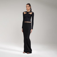 Fitted throughout for a photo-ready silhouette, this black top is distinctive yet versatile, with its twisted neckline and symmetrical cut-outs. Ribbed viscose gives it stretch for comfortable wear, making it perfect for tucking into anything from high-waisted leather trousers at the club to tailored separates for the office. Check the Size Guide to find your perfect fit. COMPOSITION 60% Viscose 40% Polyester