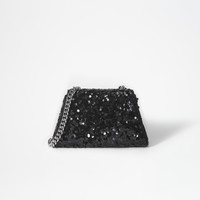 This Bow Bag's appeal is crystal clear: it's completely embellished in black sequin embroidery for a shimmering finish. The timeless silhouette is crowned by the pièce de resistance: our signature flowing bow in silver diamanté. The iconic colour combination allows it to be worn with everything from evening dresses to disco ensembles. Tote it everywhere with the shoulder chain strap, perfect for life on the go. COMPOSITION Outer: 91% Polyester 9% Elastane Lining: 100% Bovine Leather Bow: Zinc Alloy