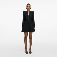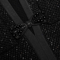 Details & Fit Subtle shine comes courtesy of this black sequin knit mini dress. Fitted to flatter the form, embellished bows highlight the daring cut-outs down the front. Style it with flats and heels alike. - True to size - Fabric has stretch - Snap popper closure down front - Removable shoulder pads - Model is 5ft10/178cm and wears a size S Composition Main: 45% Cotton 43% Polyester 12% Wool Trim: 100% Polyester (Exclusive Of Trimmings)