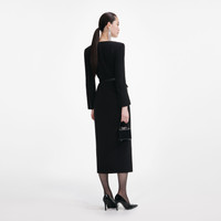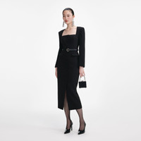 Details & Fit Impeccably tailored crepe and a sleek fitted skirt give this black midi dress its timeless quality. A square neckline frames the form above a belted waist – simply add heels for a chic party look.Impeccably tailored crepe and a sleek fitted skirt give this black midi dress its timeless quality. A square neckline frames the form above a belted waist – simply add heels for a chic party look. - Fitted style, take one size up if between sizes - This style has minimal stretch - Button closure down front - Functional pockets - Removable belt - Model is 5ft10/178cm and wears a size UK 6 - Fitted style, take one size up if between sizes - This style has minimal stretch - Button closure down front - Functional pockets - Removable belt - Model is 5ft10/178cm and wears a size UK 6 COMPOSITION Shell: 100% Polyester Lining: 100% Polyester Shell: 100% Polyester Lining: 100% Polyester