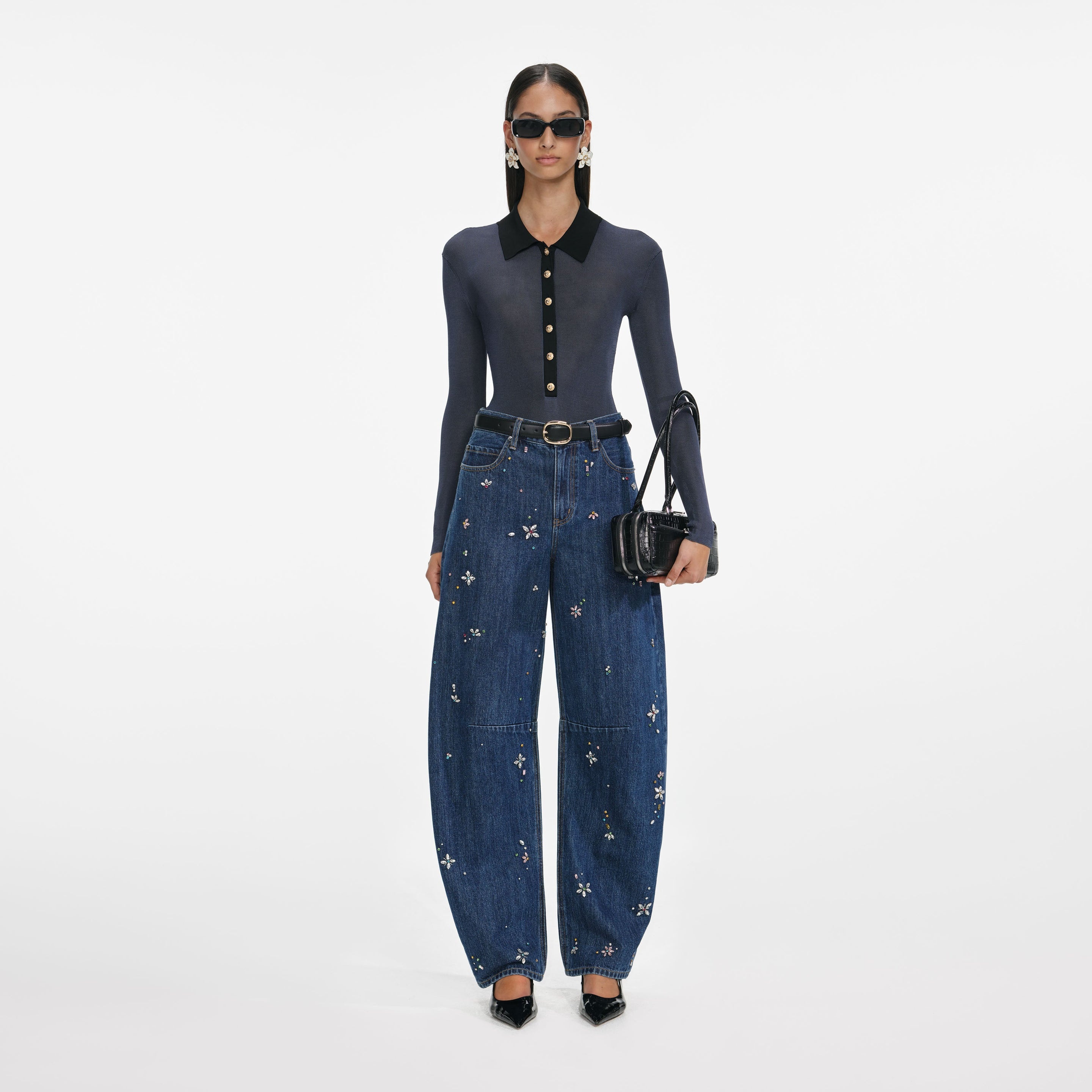 Details & Fit A true show-stopper, these party-ready jeans are embellished all over with multi-coloured diamante. Play on the proportions of its barrel shaped cut and style with a slinky top for girls’ night out.A true show-stopper, these party-ready jeans are embellished all over with multi-coloured diamante. Play on the proportions of its barrel shaped cut and style with a slinky top for girls’ night out. - Fitted style, take one size up if between sizes - This style has minimal stretch - Fly front closure - Crystal floral embellishments - 81cm/32 inseam - Model is 5ft10/178cm and wears a size 26 - Fitted style, take one size up if between sizes - This style has minimal stretch - Fly front closure - Crystal floral embellishments - 81cm/32 inseam - Model is 5ft10/178cm and wears a size 26 COMPOSITION 100% Cotton 100% Cotton