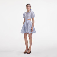 Blue Embroidered Linen Mini Dress