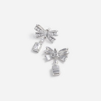 Details & Fit A sculptural crystal square lends modern Art Deco elegance to these shimmering bow earrings. Use them to dress up a crisp button down, or add our glittering bags for a fully accessorised look. - Crystal and faux pearl embellishment - Stud backing - Length: 2.75cm Height: 2.92cm Composition 100% Copper