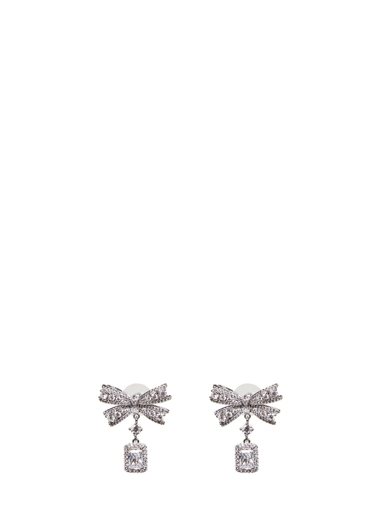 - Back pin fastening; for pierced ears - Bow crystal-set and crystal pave design - Oversized dangling crystal with crystal pave - Crystals of different shapes and sizes - Height: 2.92 cm, length: 2.75 cm - Silver color - 100% brass - Made in extra eu Made in: Season: P26 614E-SILVER