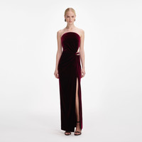 Details & Fit Designed for drama, this maxi dress is cut from burgundy velvet for a lush after-dark palette. Its waist-cinching cut-out, gold diamante trims and bandeau neckline will help you work your angles.Designed for drama, this maxi dress is cut from burgundy velvet for a lush after-dark palette. Its waist-cinching cut-out, gold diamante trims and bandeau neckline will help you work your angles. - Fitted style, take one size up if between sizes - This style has minimal stretch - Zip closure at back - Internal corset - Diamante embellished chain - Model is 5ft10/178cm and wears a size UK 6 - Fitted style, take one size up if between sizes - This style has minimal stretch - Zip closure at back - Internal corset - Diamante embellished chain - Model is 5ft10/178cm and wears a size UK 6 COMPOSITION Main: 92% Polyester 8% Elastane Lining: 100% Polyester Main: 92% Polyester 8% Elastane Lining: 100% Polyester