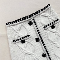 An ideal year-rounder, this skirt is made from ivory cable knit for a polished, alpine-inspired feel. It sits high on the waist and has a leg-lengthening mini hemline, as well as contrast trims and statement buttons for good measure. Wear it with your favourite cardigan, tights and boots for a weekend stroll in cooler months, and switch to a crop top and sandals on balmy days. Check the Size Guide to find your perfect fit. COMPOSITION Main: 61%Polyester 30%Cotton 9%Wool Trim: 44%Cotton 36%Polyester 15%Wool 5%Polyamide